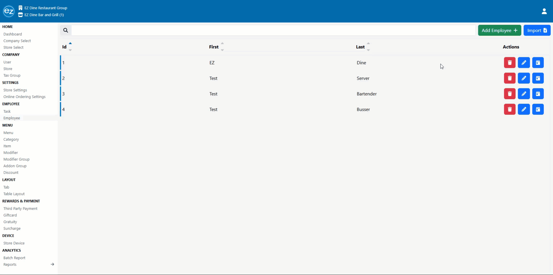 Disclaimer Please note that these accounts are used for employees to access the EZ Dine Application for daily work functions. These accounts will not have the ability to modify settings within the EZ Dine Studio. If the employees are needing to have the ability to perform edits to the Studio Dashboard, Please use the following article to make an additional Ez Dine Studio user account for the employee: Creating Studio Accounts