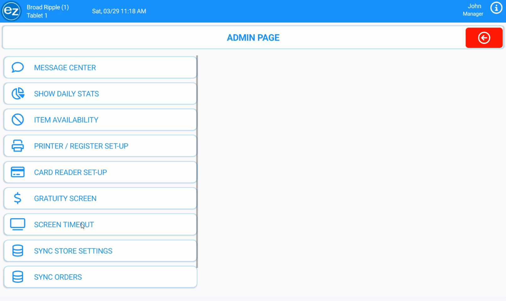 - When the idle timeout is enabled the EZ Dine app will automatically return back to the login screen based on the time selected