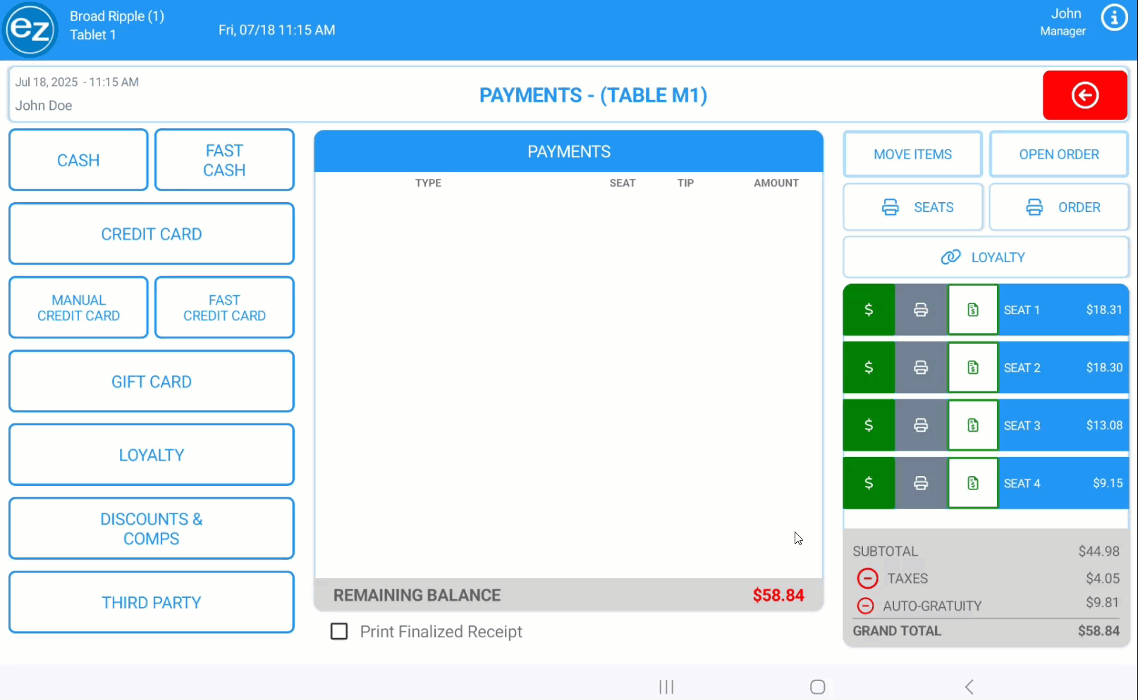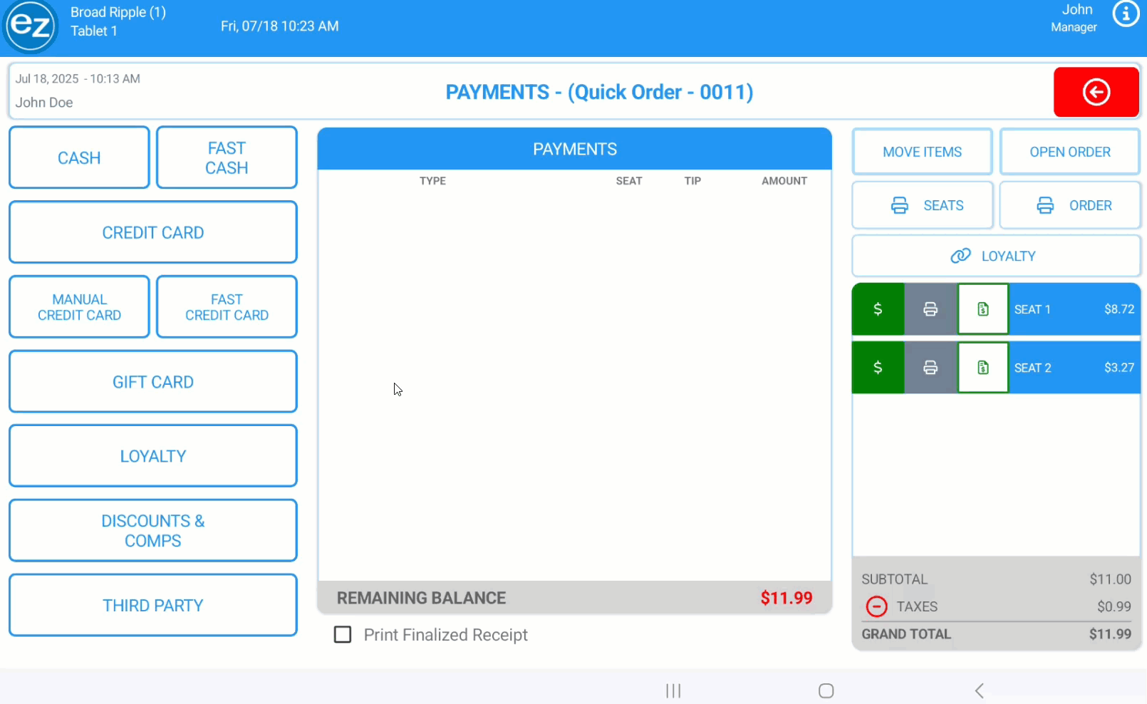 - Remaining balance due by the seat and order will be updated reflecting the discount and comp amounts that were applied