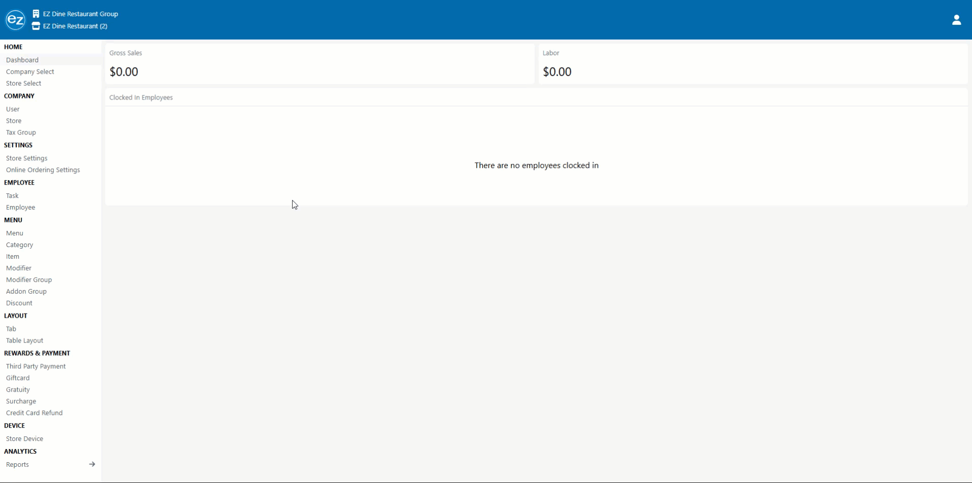 - Inside the Device section the store device page will list the current devices being used by the EZ Dine App