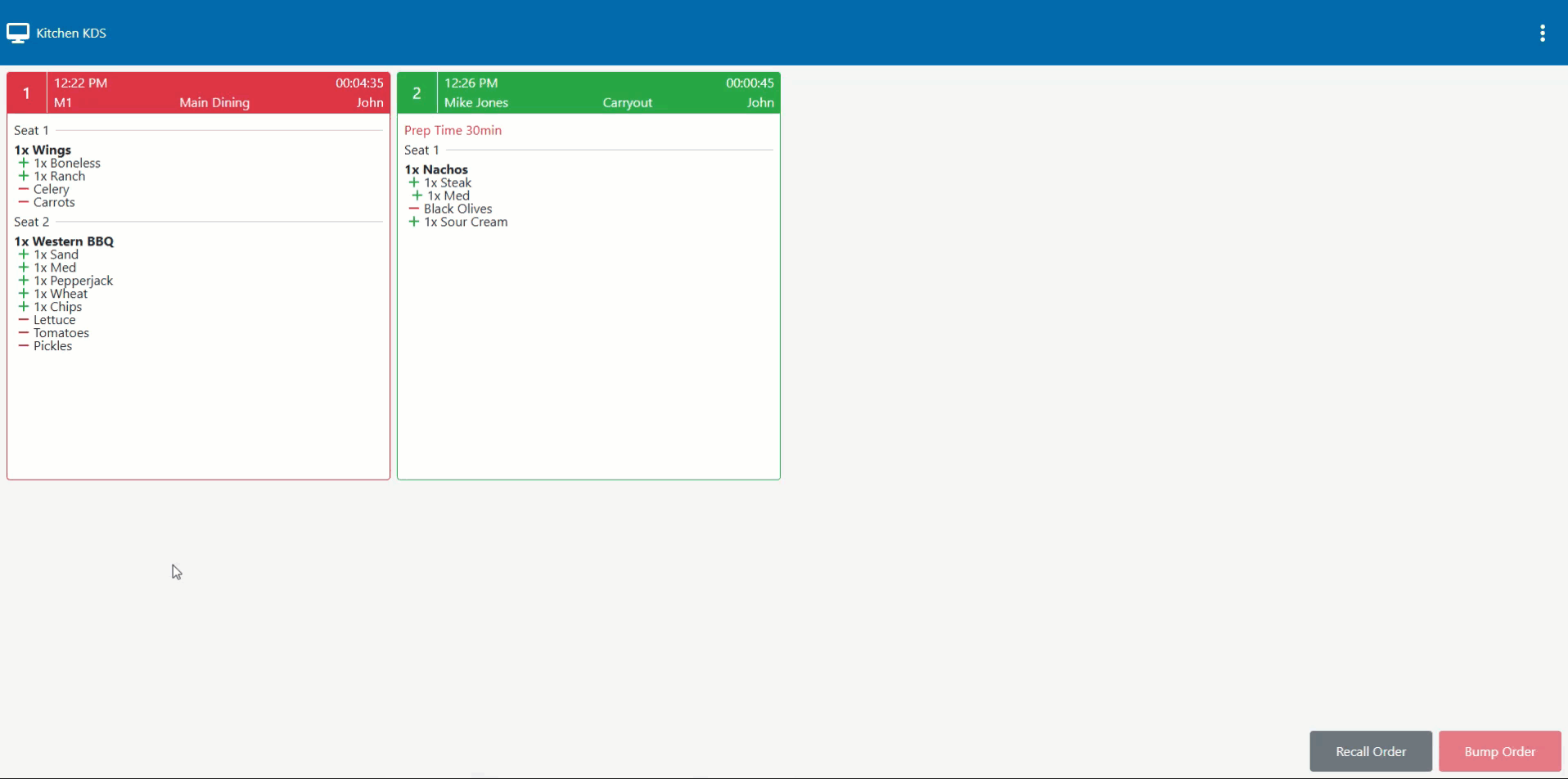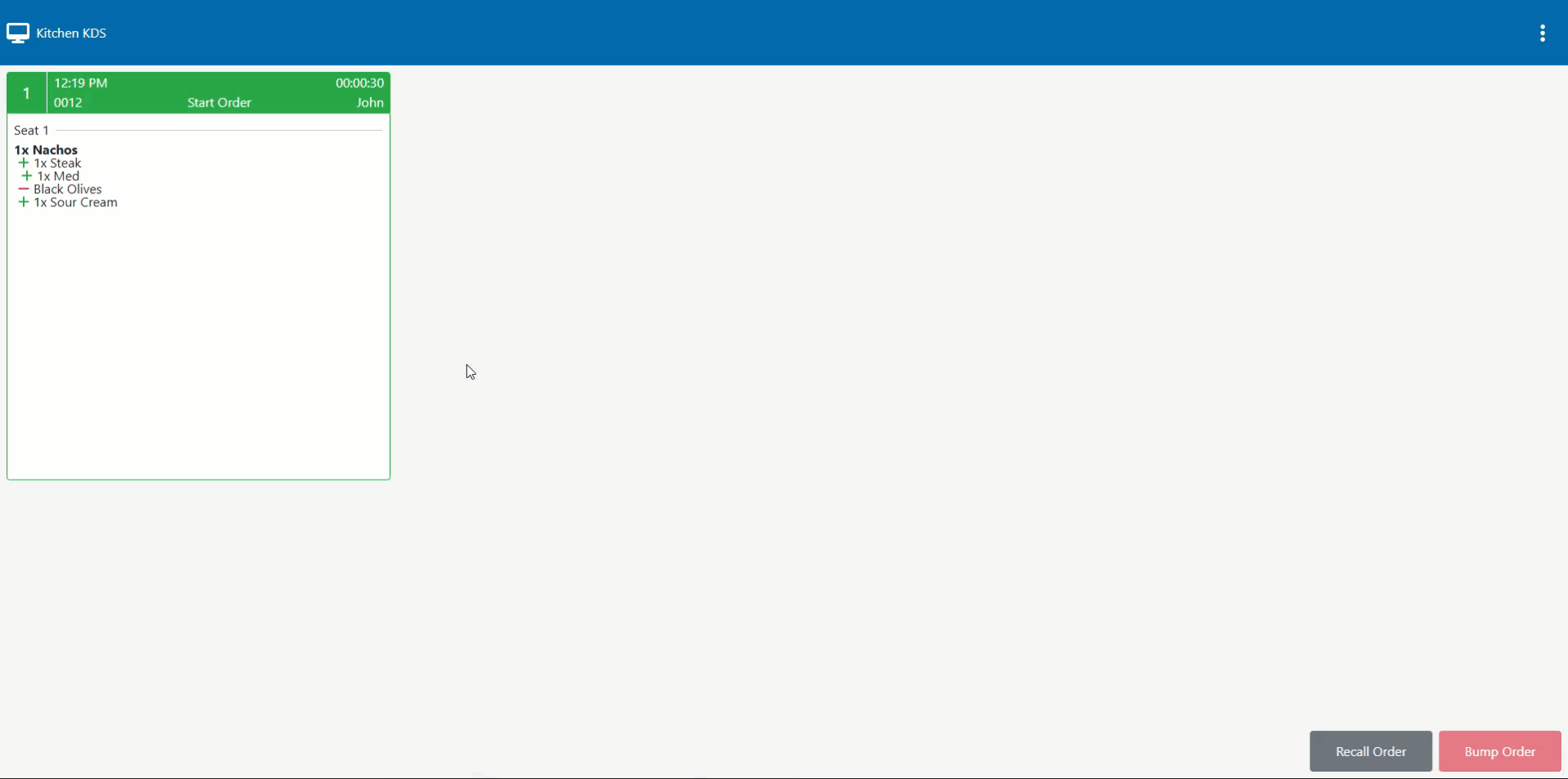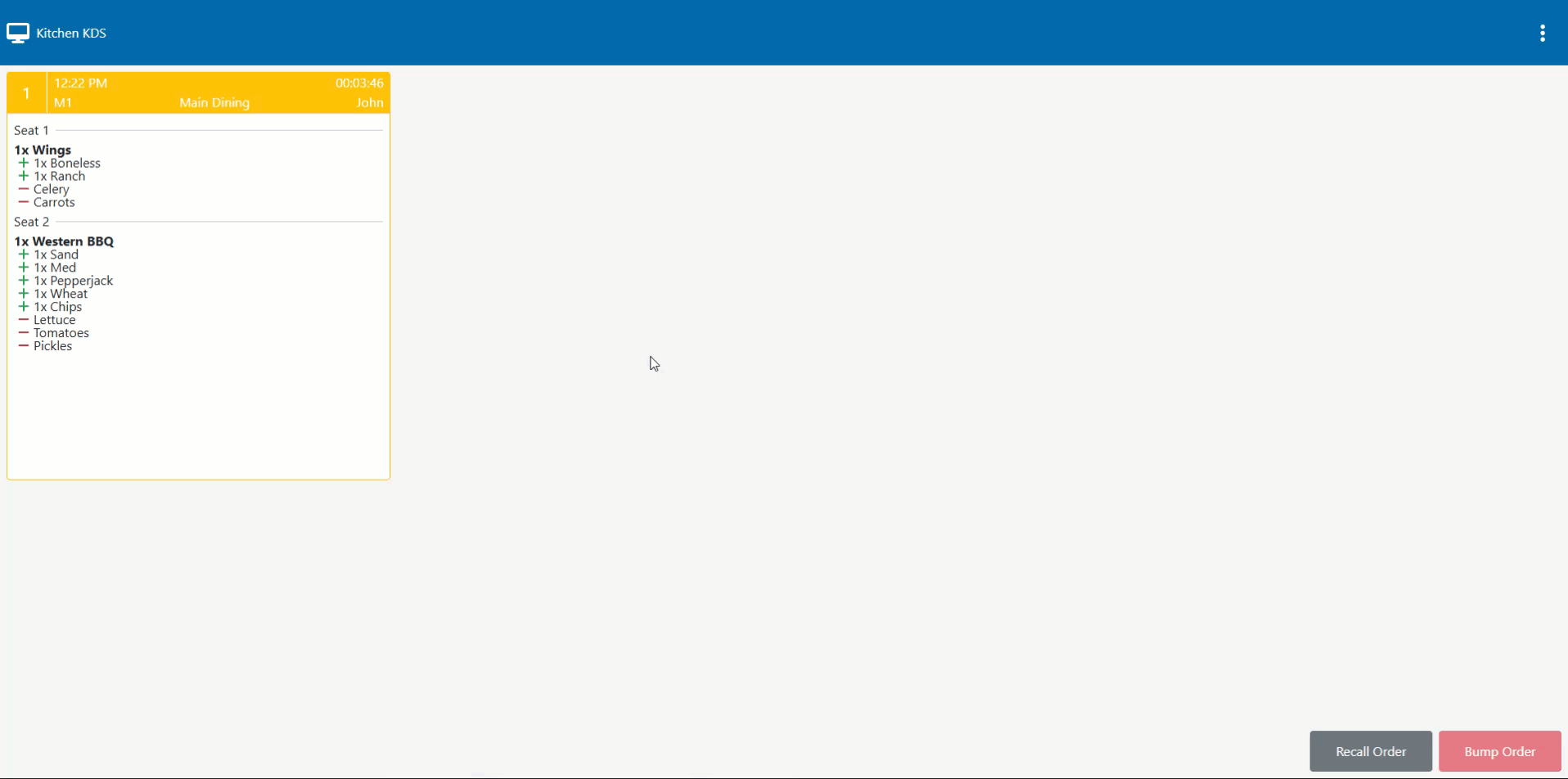 Bumped/Recalled KDS Order