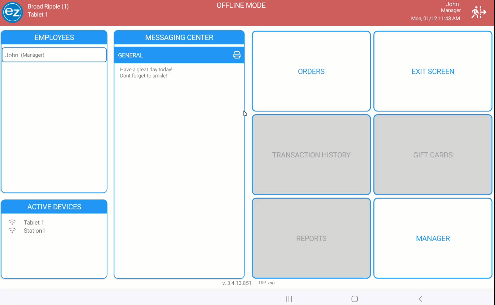 - Clocked out employees will still be listed and will require closing and restarting the EZ Dine App to refresh the active display status