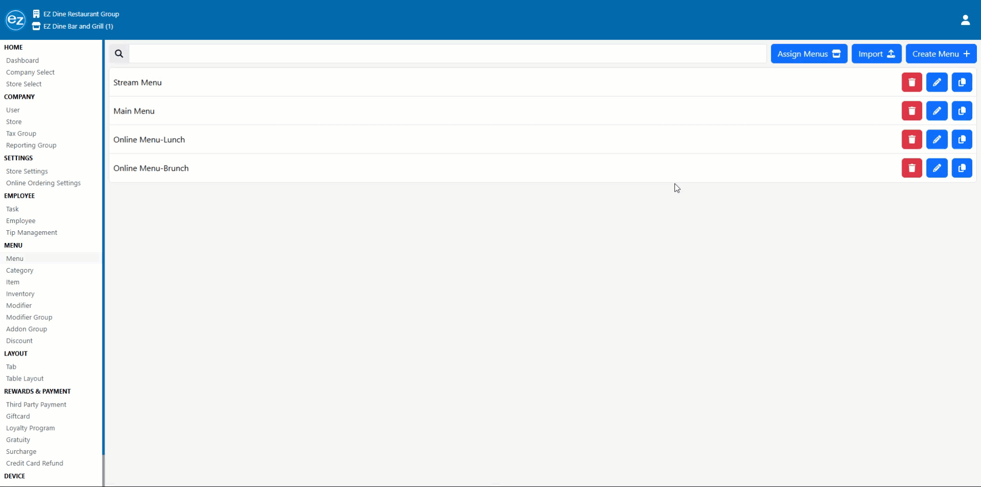 - The EZ Dine Studio company and store information will now be copied over to Stream for managing