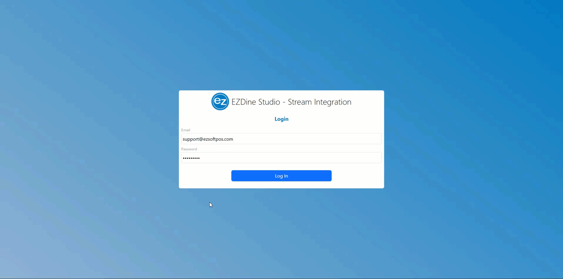 - Enter your EZ Dine Studio username and password information and log in. Your company will begin the sync process over to Stream